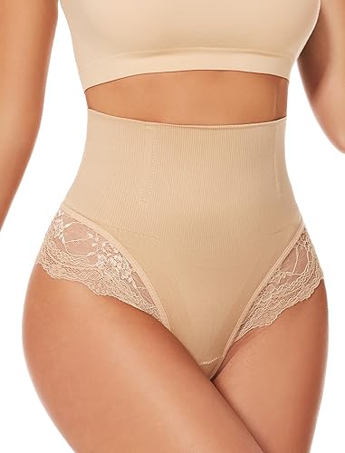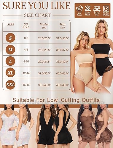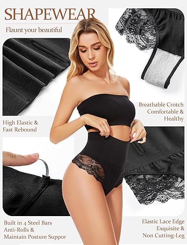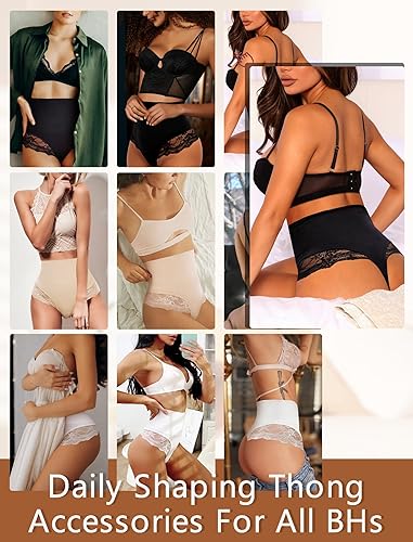 - LACE THONG UNDERWEAR: Unique lace design shows nobility. It tightens up your hips, making your butt look bigger and more beautiful. Lace thong shapewear tummy control makes curves more attractive. New moms can show off their beautiful curves with confidence.