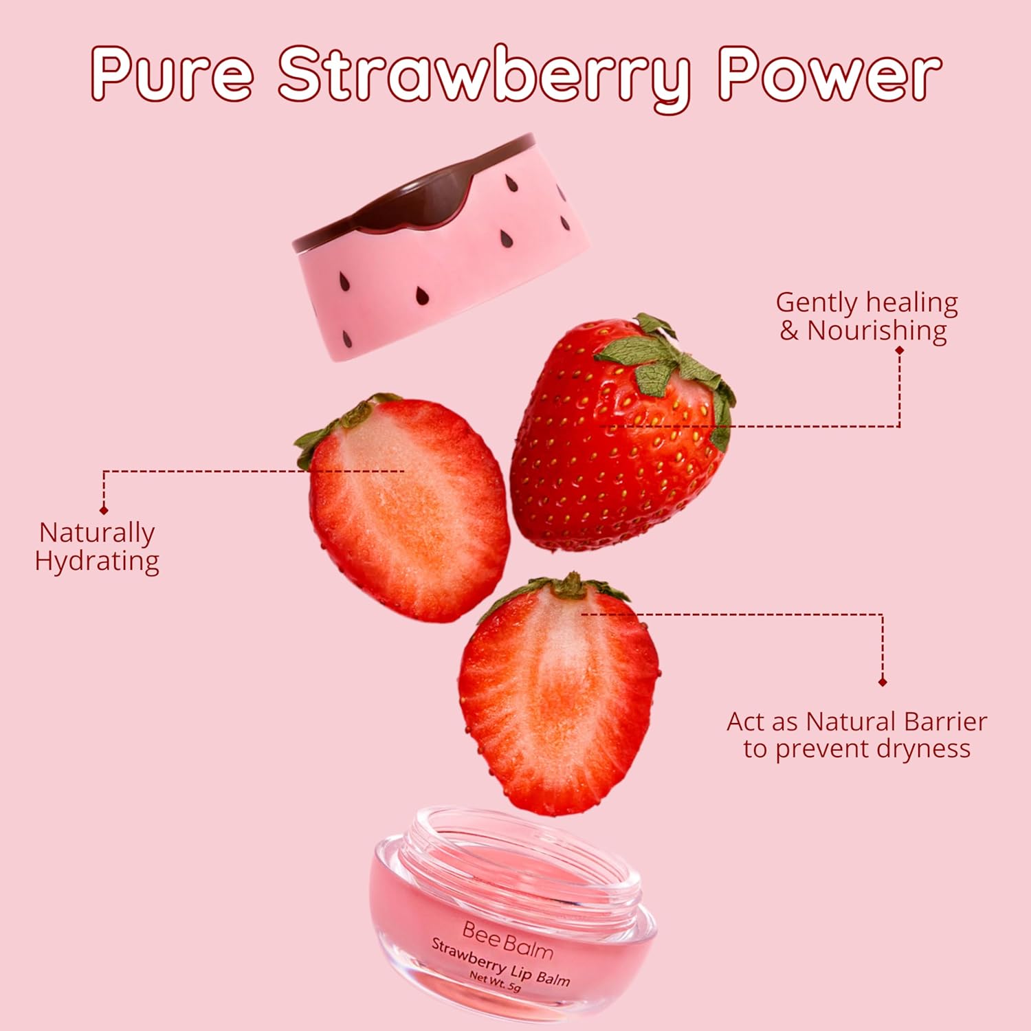 Deep Hydration & Strawberry CareEnriched with strawberry extract, beeswax, and vitamin E, this lip balm provides intense hydration and nourishment. It soothes dry, chapped lips while leaving them soft, smooth, and naturally refreshed all day. Enjoy the fruity goodness of strawberries for a kissable, healthy pout!